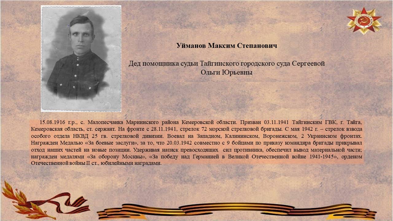 Великой Победе - 80 лет. Герои Великой Отечественной войны - Уйманов Максим Степанович